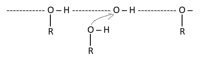 Adjacent molecules of the compound containing an O ̶ H bond will be attracted to each other by opposite charges, this forces of attraction is known as "Hydrogen bonding"